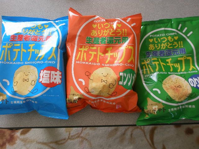 移転リニューアルオープンした士幌の道の駅へ行ってきました。そこで購入してきたポテチ三種です。7~8袋抱えている人もいました。平日でしたが、士幌牛ハンバーグは完売、にじいろ食堂のレストランも満席で並んでいました。連休中は駐車場もなかったのではないかと・・・。