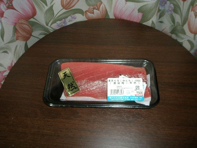 病院帰りに大丸のほっぺタウンでなんでもブラックフライデーとかいうセールもはじまると聞いて行ってきました。テレビで中継していた一貫96円のお寿司はすでに売り切れでした。開店から一時間で売り切れとか…数量限定ならそうテレビ中継の時に言ってくれればいいのに・・・客集めかぁ。あでも、三時から天然マグロの解体ショーがはじまり、その解体したばかりの中トロをゲット~。このボリュームなら赤身でも2000円くらいするのでは、と思いましたが、中トロで税込み1500円でしたよ~。まあ天然の本マグロが安く手に入ったからいいかぁ~。