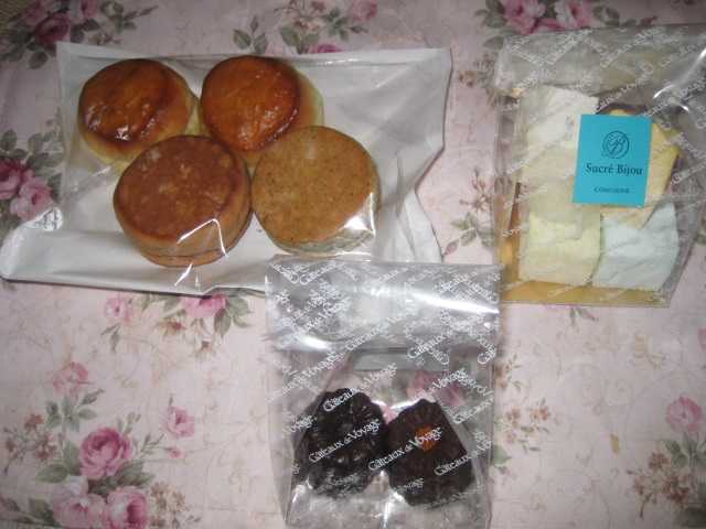 ついでに、三越のデパ地下でスコーンとシュクレ・ビジュウのギモーブとカヌレを購入。スコーンは、食べたかったフォートナム・アンド・メイソンのスコーン、プレーン・紅茶・シナモンです。ああこれで、ティータイムが過ごせそう~。(あっ、スコーンが逆さまに・・・)ギモーブも、さっき食べたのが、マンゴーとパッションフルーツ、あと四種です。一個ずつばら売りで買いました。