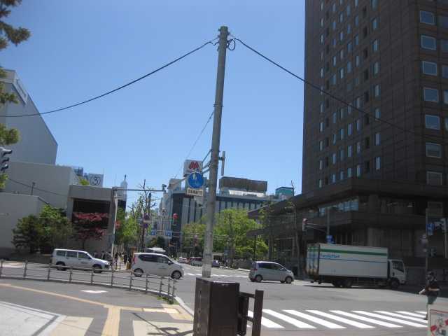 奥が丸井さんで、手前が札幌市役所です。バス乗り場から撮っています。