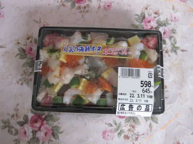 またランチ用の散らし寿司のお弁当です。前回、マグロも入っていたんですけどね、今回代わりにブリが入っていました。
