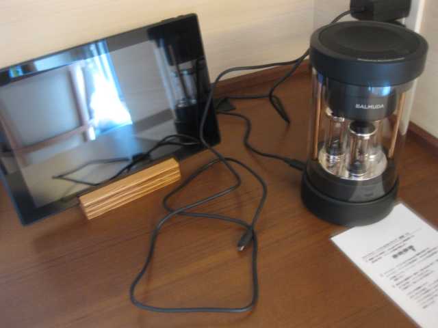 部屋には紙の案内はなくて館内すべてタブレットでした。フロントに電話をかけるときもタブレットからなのです。そして、右側にみたことのないものが・・・なんでもPCやスマホに繫げて音楽とか聴けるスピーカーみたいなものなんですって。ホテルもここまで来たのか…。