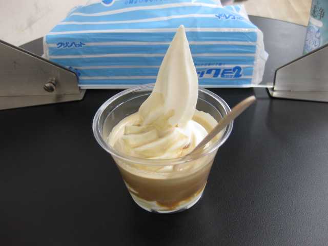 隣にカフェもあってそこで食べたフルーツダッチなんとかとチーズクリームのセットです。ここもタブレットでの注文なんですよ。正式には「ダッチクラフティいちご&ダンジュ」というらしい。