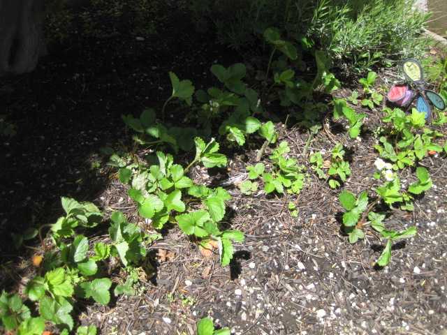 そして、イチゴの花も結構咲きましたよ、小さな実になっているのもチラホラあります。去年は四、五個収穫して食べた記憶があります。