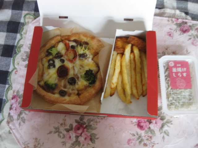 上が私の飲めるピザあふれるチーズとオマールソース、下がボス橘のしらすのオリーブ&アンチョビです。いつもの昼ハットのおひとり様ピザよりちょっと高かったかな。あ・・オマールソースの方はえびが崩れている・・・・。