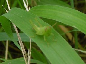 なぜか葉っぱのほうにピントが合ってしまい、バッタはピンボケ(汗)