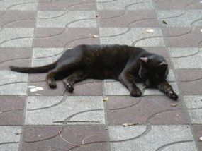 植物は木が生えてるだけだったけどw、休憩スペースのド真ん中に、眠そうな黒ニャン発見。