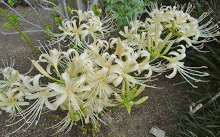 彼岸花が赤い花も白い花も、やっと咲きはじめた。