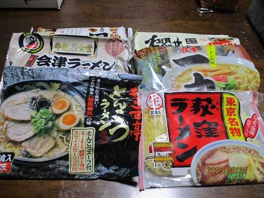 郵便局ふるさと会の宅配の商品が2個届きました。6月に毎月ほしい商品を選びました。12か月申し込めますが、途中に申し込んだので来年の3月までの分は6品届きます。今月は2品届きました。1品は、「全国ラーメンセット」福井県のラーメン店の品もありました東京、函館、熊本、秋田、会津、敦賀のラーメンが各2個入っていました。娘宅にもおすそ分けします。もぅ1品は山形県の上山秀(かみやまシュー)山形県産米つや姫米粉を使ったクッキーシューです。中のカスタードもつや姫米粉でぷるぷる食感に炊き北海道産生クリームのホイップと混ぜ合わせてあるそうです。こちらも娘宅にもおすそ分けします。おやつにいただきました。今日9月19日に検査した胃の内視鏡の結果を聞きに行く日だったので病院へ行ったのですがまだ結果が出ていないとのことでした。でも、癌が見つかれば早くわかるはずなので多分癌の疑いはないだろうとに事です、でも、夜寝るときに胃に少し違和感があるので薬を2週間分処方していただきました。2週間後は総合病院は待ち時間も長く患者数も多いので特に問題はないので、かかりつの病院を探したほうがいいとのことでした。今のところ、内科の薬は何も飲んでいないのでかかりつけの病院はないので今後のことも考えてこれからかかりつけの病院を探す予定です、