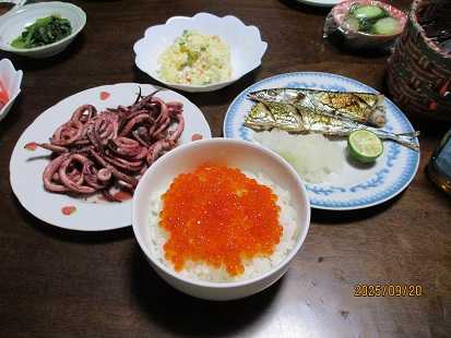 昨日の夕食は旬の食材で焼き秋刀魚、前回の日記で紹介しましたがイクラのしょうゆ漬けどんぶりイカを炒め、ポテトサラダです秋刀魚に大根おろしとスダチを添えました主人のお姉さんのお宅にはスダチの木があるので毎年スダチを頂いています。今年もいただきましたスダチシロップにしてもおいしいそうですね。秋刀魚に添えました。主人は焼酎に入れています。主人の友達が葡萄を自家栽培しているのでたくさんいただきました。見栄えはよくありませんが、葡萄の味がしておいしいです。9月21日に主人の父の33回忌の法要がありました。自宅で行いました。主人の兄姉は健在です。一番上のお姉さんは85歳、長男は82歳、次女は78歳と高齢ですが皆さん元気です。主人は74歳です。夫婦でお参りしましたが、次女のご主人は2年前に亡くなりました。37回忌はどうなっているでしょうね。