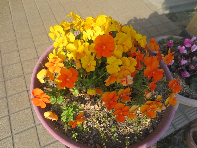 久しぶりの更新になります。2月末から3月初旬にかけて、区の役員などの入れ替わりがあり引き継ぎがありました。私も今年の3月から2年間家庭相談員の役に就きました。その引継ぎも終わり明日は1回目の役員会があります。この家庭相談員は福祉委員の会合にも出席することになります。これから2年間は家庭相談員と主人の区の仕事も手伝っているので忙しくなりそうです。区の班長も変わり12日に1回目の班長会があり、お茶出しをしました。19日は1回目の家庭訪問、28日の夜は福祉会に出席です。4月も研修会など行事がたくさんあります。出来る範囲で頑張ります。今日の我が家の庭の花地植えにした小さな梅の木に花が咲きましたもう5年以上前に植えた一才桜も開花しました下の画像は全体に写しました昨年の秋の植えたパンジーやビオラも開花しています紫と黄色のビオラです下のビオラはミックス色のビオラですね。こちらもビオラです下の画像は黄色のパンジーですプランターに隙間があるところはお花を買って追加予定です。今日の玄関のお花ほかにもスイセンも咲いてきました。チューリップももうすぐ開花しそうです。順次写真に載せる予定です。春らしくいいお天気なのですが花粉が飛び交っています。