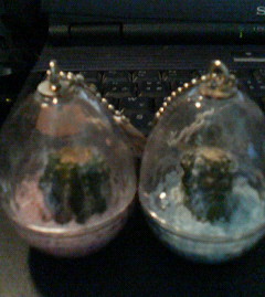 今、狭い部屋に住んでいますので、大きな観葉植物を育てることはできません。これくらいなら、できるだろうっていうのが「サボテン」これをどこで買ったかというと…UFOキャッチャーの商品でした。その名も「サボテンエッグ」ケース全体の高さは6cm、サボテンまでではわずか3cm。冬場は1ヶ月に1回、夏場は1週間に1回、表土にしっかりお水をあげてくださいと書いてあります。でも、もらって1ヶ月以上もっと経つのに、1回もお水をあげていないんです。今日、今から上げよう!っと。2個のうち1個がやたらでかいので、そのうちケースから出してあげないといけないなぁ~って思っています。よ~し!巨大化させるぞ~~!