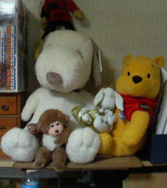 体調不良の私に気を遣って、一時期、主人はUFOキャッチャーによく連れて行ってくれました。ここのキャッチャー屋さん、営利目的ではあるけど、「営利第一主義」ではないので、適当にうまく取らせてくれることがあります。最初はぬいぐるみなんですが、そのうちぬいぐるみも飽きます。手を変え品を変えで、日常生活雑貨類やゲーム、ラジコンカーなどを入れてくれるようになりました。日常生活雑貨をよく狙っていた頃、私と主人は「くまのプーさんファミリー」ファンであるために、キャッチャーでゲットした時には「プーさん」のものをよくもらっていました。みなさまには到底信じられないでしょうけど!!!今、それが恐ろしい程溜まってしまい、年甲斐もないけれど、今度の新しい家は「プーさん御殿」になってしまう可能性が大です。また、茨城県の家には身長120cmのビッグプーさんが、今、私たちの帰りを待っていてくれています。元気にしているかな?プー。どうレイアウトして、お洒落にこざっぱりとさせることができるか?考えただけでも頭が痛くなるような状態です。不可能に近い状態です。何事も程々が1番。調子に乗って、取っていた私たちも置かれた現状にそのうち、「ア然」とする日が来るのも近いかもしれません。でも、可愛いんだよなぁ~~~。
