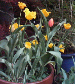 昨年の6月に体調を崩して以来、いろんな悲しいことがありました。♪やっていた仕事を辞める:他のみんなに迷惑をかけるから…。♪大学院を休学している:この9月まで休学。4月の復帰はできなかった。病気になって、サラリーがなくなり、自分のお小遣いや家計にも影響がでました。生活するには経済的にも少し余裕が欲しいのです。でも、それが絶たれたのはかなり心苦しかったのです。その時でした。暇にしていた私にブログの存在を教えてくれました。以前、起業するにあたり、HPを作成していたので、それよりも手軽にできると思ったのでしょう。私もどうしようかな?と思いながらも、どんどんはまっていく自分に、これは楽しいものだと感じるようになりました。♪ブログを通じて、仲間ができました。この年齢になると他愛もないことを何でも書ける(話せる)人は減ってきます。でも、何らかの反応があるということは大変素晴らしいことで感動的でした。♪この間、お誕生日でしたが、生まれてこの方、これだけお祝いのメッセージをたくさん頂いたのは初めてのように思います。どれも暖かくこころのこもったメッセージで涙が出ました。♪健康だからこそ、仕事ができ、お金が稼げ、自分のやりたいことができる。♪病気だからこそ、健康の時には気づかなかったことに気づき、思いもよらない出来事に出会える。この2つの状態に出会いながら、今という時を過ごしています。忙しい時には「お花」に眼を配るということもありませんでした。実家の庭にチューリップが咲いたので、紹介します。