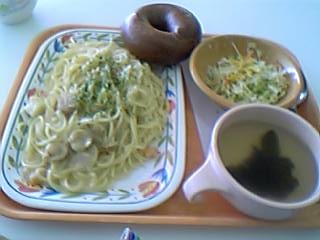 こんにちは!今日は風が強くて窓がガタガタ音がしています。それに寒いですね~。一時期、寒さが和らいだのですが、再来といったところでしょうか…はぁ~寒いのが苦手だ!昨日は奇跡が起こりまして…また昼御飯用のお弁当を作りました。でも、アンパンマンポテトとミニトマトは17日同様、「かぶって」いまして。ですので、ちょっと恥ずかしいので、小さめの写真でアップします。…タンパク質として「鶏のから揚げ」を入れたのですが、あとのおかずはポテトを除いてほとんどお野菜でして…おひたしとかきんぴらとかです。途中で間食しそうになりましたが、ここは踏ん張って耐えたのが昨日です。ところで今日…奇跡は2度は起きませんでした。恒例の研究室でのセミナーのため、遅くとも朝7時30分には家を出なければならないので、朝の弱い私はお弁当を作れるワケもなく。今日はランチは1人だったので、先日も1度紹介した新しい業者が入った食堂へ行ってきました。食べたもの!ハイ!ドン!メニューの紹介です。シーフードパスタ…小さいえびとほたてが入ったクリームソースパン…これはベーグルではなくて、「黒糖」の味がしました。サラダ…キャベツの千切りがメインですね。スープ…中華風?わかめスープでした。以上、HOW MUCH?久しぶりに値段当てゲームをやりま~す。見事正解された方には「キング」か「クィーン」の称号が与えられます。(…こんな称号いりませんよね…間違いなく)ボリュームがあって、かなりお腹がパンパン。今晩からまた?少食します。ほんとは少食した気分になっているだけです。それでは…yumicornでした!