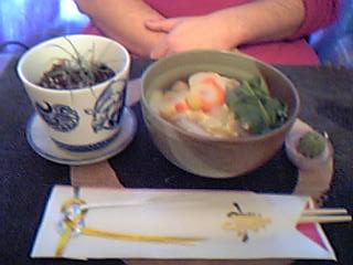 かれこれ先週土曜日のことですが、神奈川まで物件の内覧に行き、何とか終わって。主人が1度、職場の人たちと行ったことのあるお店へ今回初めて行ってきました。オシャレなお店ですよ。出入り口はこんな感じです。それでお店に入るとこのような作品が飾っていたりしまして…。それではお料理を…。お盆の上には飾り皿が置いてあったのですが、店員さんが持っていってしまわれて。ちょっと貧相な感じがしますが。右側は前菜です。2種類から選べるのですが、ふたりとも同じものを選んだので。白菜とタラのパスタです…パスタサラダに見えるのですが。続きまして…メイン。お肉かお魚から1品選べます。お肉はヒレ&チキン、お魚は鯛&イカ(春菊の天ぷら添え付き)でした。同居人はもちろん「お肉」、私は「お魚」でした。メインが終わると御飯とお味噌汁が出て来ました。五穀米…違った…そのような類の御飯に青菜が混ぜ合わせられてました。最後はコーヒーか紅茶で終了です。こんな感じのお店…いかがでしょう??またお値段当てクイズをしたいのですが、ご興味ありましたらコメントに入れてくださいね♪時には優雅な落ち着いた気分で食事をすることも大切ですね!