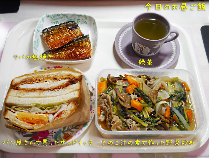 右側のおかずは、この間のせたきのこ汁の素を入れて作りましたよ。なめこも入っていたので、とろとろでした。