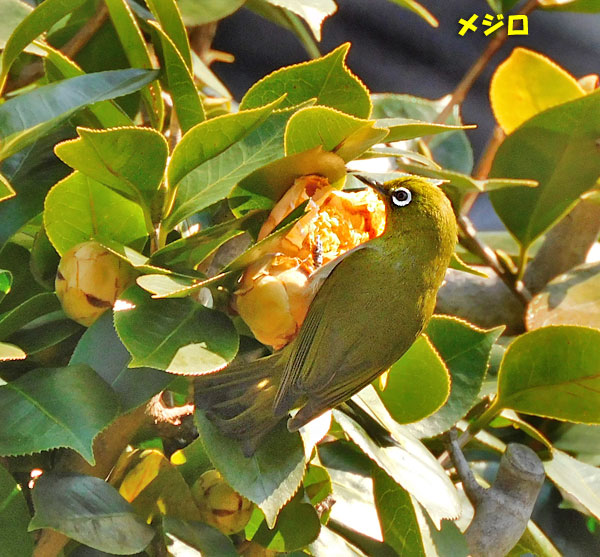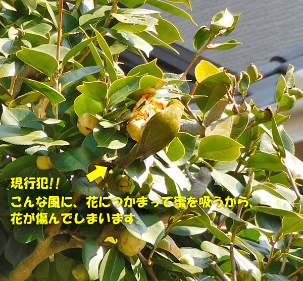 そして、これは、我が家の白玉椿にやってきたメジロ