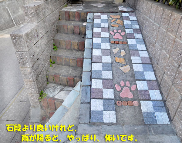 石段よりは、楽なんだけど、それでも雨の日とかは滑りそうで、