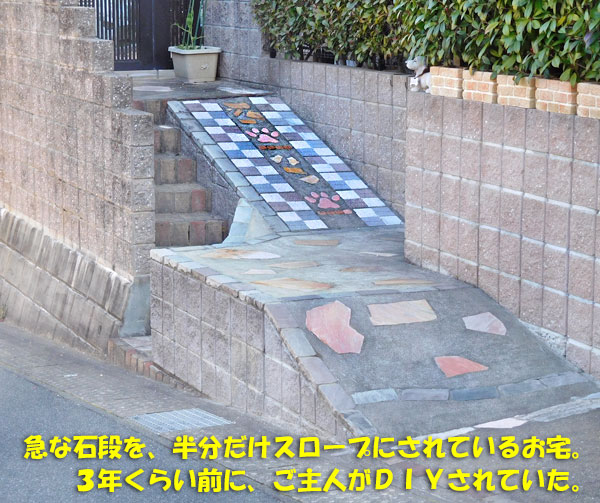 石段の半分をスロープにされました。