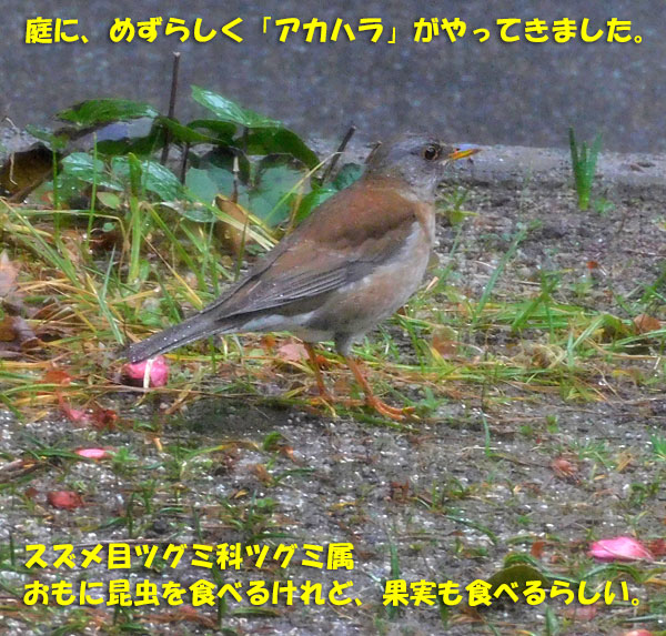 写真に撮って、あとで確かめたら、 「アカハラ」 でした。