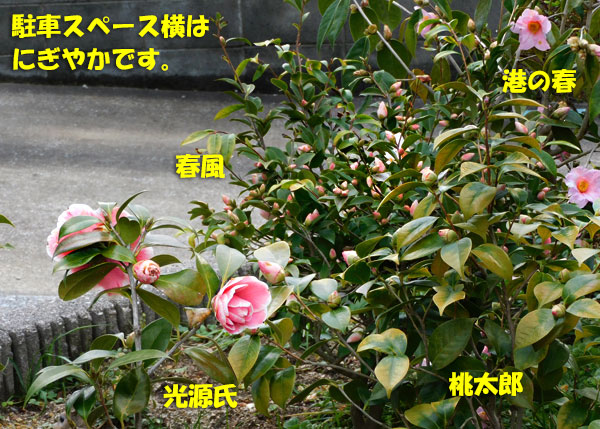 門から入ったところは、まだ小さな椿の木が並んでいるので、