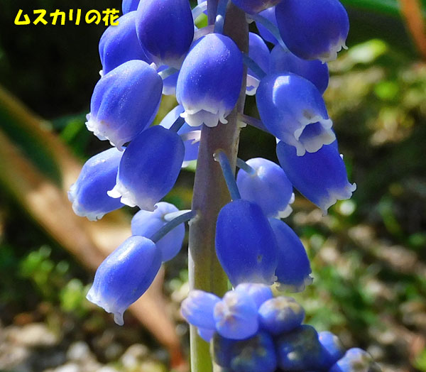 これは、たくさん咲いている ​ムスカリ​ の花のアップです。