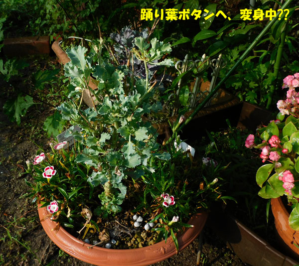 これは、最近直射日光が凄すぎるので、移動させた ​葉牡丹​