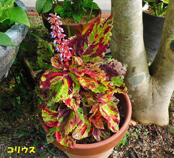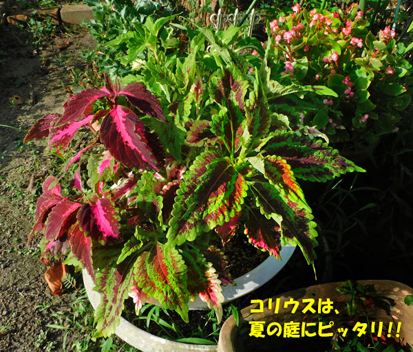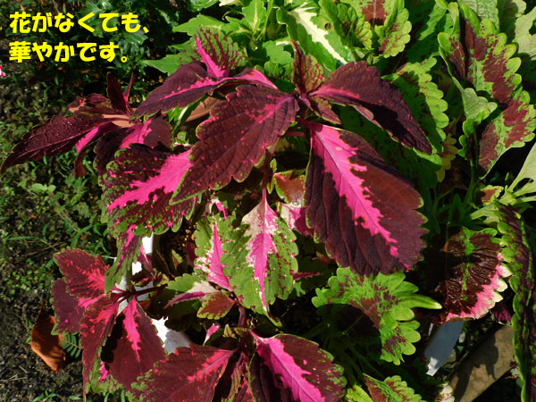 コリウスは、花が咲かない時期でも、庭を華やかにしてくれるからいいですね。