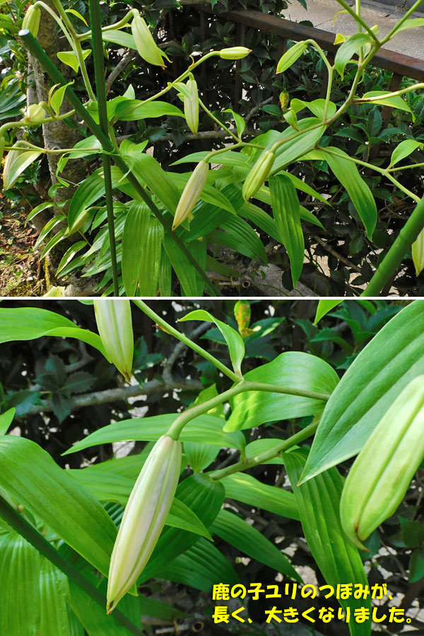 庭の西南方向に、たくさん咲こうとしているのは、 ​鹿の子ユリ​