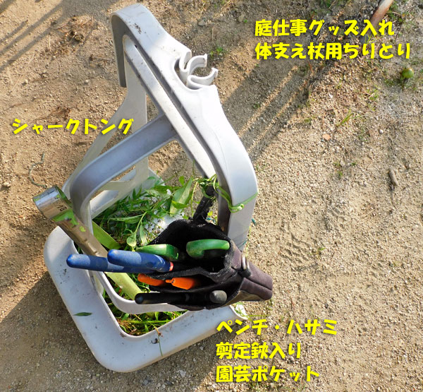 これは、庭仕事をするときに、ずっと近くに置いている ​塵取りセット​