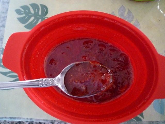 パスコで貯めたシリコン容器でさっそくイチゴジャムを作りました。イチゴは畑のおじさんからもらったイチゴ。小さいものや形が悪いものを使いました。1回目はレンジで加熱しているときに吹きこぼれてしまって失敗。半分以上こぼれてしまいました。レンジはべとべとだし、もったいない気を取り直してもう一回・・・。2回目はレンジの前で様子を見ながら、加熱したので上手く出来ました砂糖はヨーグルトに添付しているものが沢山あったので、それを使いました。ちょっと甘すぎたかな・・・。