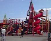 23日、岐阜市の長良公園に行きました。晴れたら、ピクニックに行きたいというまいこの希望で、朝からお弁当を用意して・・。長良公園には、木製のアスレチックがあったのですが、それがすべて取り壊されて、新しい遊具ができました。小さい子から遊べる遊具も増え、運動の苦手な?まいこも、まだまだ遊びたい!という感じ。ロッククライミング?大きな子供たちは挑戦していました。(まいこは×)まいこのお気に入りは、「蟻地獄・・・」(これは写真なし・・・)走り続けないと、中に滑って落ちてしまう。まいこは中から「なかなか上がれないよ!」と叫びながら、楽しんでいました。