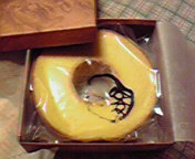 らくちゃんが仕事で金沢に行ったときに、買ってきてくれたお土産。要冷蔵の品。開けてみると、粉砂糖のたっぷりかかったケーキ甘いのかと思ったら、レモンの風味がしてさっぱり。チーズの味もきつくないので、チーズ嫌いでも大丈夫かも。しっとりとしてとても美味しいケーキでした。