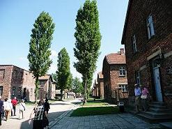 第11棟を出て 外の門から中庭へ入ります向かって右が11棟左が10棟 第10棟の戸は閉じられています8月20日 ポーランド 世界遺産アウシュビッツ 第10,11棟 死のブロックそこがさらに恐ろしいです「死の壁」はレプリカですが献花やお水が供えられています1941年から 1942年にかけてナチス親衛隊はここで何千人もの人を射殺しましたここでは抵抗組織指導者やその参加者人質のほか逃亡計画支援者や援助したものなど主にポーランド人が殺されました16と17棟の間は点呼広場です一人でも足りないと一晩中立たせて耐えられずなくなる方もいましたこの広場の反対側には集団絞首刑台があり1943年7月には周辺住民と連絡を取った咎で12人のポーランド人が公開処刑されましたとても、大人が何人もぶら下がる強度があると思えませんみんな軽かったのですね 囚人逃亡防止に電流を流した有刺鉄線が二重にめぐらせてありました2kmありました囚人は「鉄線に行ってくる。」と言って感電自殺を選びました