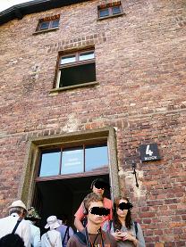 少し歩きます地面は土と石さすがにごみひとつ落ちていません 気温が28度くらい天気良し木は空に伸び草も青々第10棟の入り口は鉄の扉で施錠されていますまだ、展示の準備ができていないとのこと ここはドイツ人の産婦人科カール・クラウベルグ教授がユダヤ人女性囚に不妊処置の人体実験をしていたところ・・・想像できない、したくない処置ということは手術ですか?・・・・第11棟との間に門があり中庭となっています第11棟は収容所の端にあり隣に有刺鉄線と見張り台があります 第11棟の入ります 入り口の左には死のレリーフ中に入ると重苦しい~ 内部はほぼ当時のままです展示部屋は入り口がガラスで保護されています臨時裁判所監禁室鞭打ち台移動絞首台飢餓室立ち牢真空室 など収容された当初はみんなが布団でごろ寝 収容しきれなくなり3段ベッド 中庭への通路その手前に服を脱ぐ部屋 第10棟と第11棟との間の中庭は銃殺刑場所「死の壁」があります服が傷まないように脱がして銃殺人より服が大切なのですね格子の向こうに「移動絞首台」地下に降ります ここからはさらにぞー 火気厳禁 ろうそくを灯してはいけませんこの8月1日よりこの地下牢も写真を撮ることができるようになりましたすごい混雑ですので止まることができませんどうなっているのか酸素がない部屋18号牢は有名な餓死室日本にもゆかりのあるコルベ神父が餓死室に入れられ、最後は薬殺されています牢には花がお供えされていますメダイとコルベ神父 愛の殉教者 聖マキシミリアノ・マリア・コルベ神父立ち牢この90cm×90cmの空間4名が入りますみんなやせ細り入れたのでしょうね入り口は下にあります今は展示用に部屋が見えますがたぶん口のない壁に囲まれていたのでしょう立ったままで人はどんな状態になるか実験したようです何部屋もありましたが戸が閉まっています何人も、さまざまな事が行われたのでしょうねのぞき穴が私の頭上にあり中を見ることはできませんでしたアウシュビッツに収容された人々ははじめポーランド人の政治犯ナチスの思想は相反するとして、修道士たちが収容されました