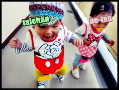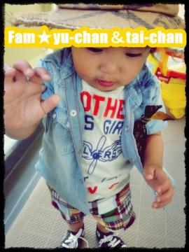 今日も暑いーーー!!!でも嬉しいィィ~♪♪だって半袖着せれるもんね~♪♪早速tai-chanにミッキー着せましたハイ!!!また派手コーデになってしまいましたが……汗でも本当に可愛いミッキー君にメロメロ~のmamaですオシャブリが似合わないところはスルーしてあげて下さい。。笑yu-chanはバーバとお出かけ行ったのでtai-chanとトイザラス行ってきたやっぱり車大好きです~しかし『アッ!!アッ!!』っと次から次へと指さして違う車へ移動ばかり…。でも楽しそうなお顔見れてよかったよかったほんとお外は暑かった~!!保育園でも毎日お外遊びしてるので夏来る前に真っ黒です…日焼け止めきちんと塗ってあげないとあかんなぁ…帰りne-tanに会ったDDのステイトTEEのグリーンなかなか可愛いかったぁ~パンツはFITH☆そしてなぜだか裸足!!!笑もぅすぐ1歳のne-tanがスタスタ歩いてるのをジーッと見てるtai-chanでした。。tai-chanもようやく歩くことに目覚めてきました!!オソッ。。。今日はムービーも撮ってみたんだけどなぜだかパソコンに取り込めない…なぜ??また記念のヨチヨチ歩きをお披露目できたらなぁ~って思っています☆入院中のバァチャン待ってて下さいね☆☆