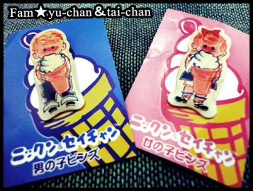 今日は1日雨でしたぁ…ほんとジメジメしててイヤだね…今日tai-chanが部屋を荒らしていた。。毎日のことですが…そしたら以前ソフトクリーム屋さんにもらったピンズを両手に持ってたカワイイ~っていただきましたが使う機会もなく保管されてた…汗ニックン&セイチャンって言う名前なんだね~見たことはあったけど名前は知らなかったゎ…レーシングピンズディズニーピンズ●●イロイロなCUTE物●●梨花ちゃん愛用☆カゴバッグ再入荷してる~♪シュシュ風バレッタ☆リボン×ボーダー380円ブラック可愛い☆980円1580円コンビネゾンKIDS☆マドラスハットレディーメイド☆水着