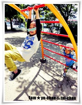 今日はイイ天気だったなぁ~保育園のお友達と遊ぶ約束していた日待ち合わせまで公園で少し遊んだよ~2人とも公園は大好きニコニコyu-chan&tai-chanなのでした。。tai-chanはテクテク歩いてますでもまだハイハイの出番の方が多い……汗この後おやつ買いに行ってお友達のへ行きました♪男子4人☆女子2人集合~!!そりゃー大変大変!!大変度NO.1はもちろんtai-chanですが…泣家グチャグチャなってました……申し訳ない。。夜は恒例のクルクル寿司へ行きましたその後ペットショップへtai-chan&ワンコがずーッと見つめ合っててみんなで笑ったゎ!!この後tai-chanがおしりフリフリするとワンコは跳びはねて反応してた!!可愛いかったなぁ~今日も1日お疲れ様でした!! ←自分へ言ってます。。笑