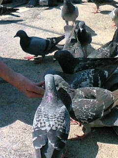 ゲームに熱中し、すっかり寝るのが遅くなった浮かれモードの金曜日の夜ちなみに、就寝時間は夜中の2時頃。しかし、今日は朝から出かける用事があったため、9時半にがんばって起きた土曜の朝。ちなみに、いつもはお昼までスヤスヤスヤ...なんだかんだで7時間半もぐっすり寝てるから、がんばってもないけど( ̄ω ̄;)!!...というわけで(どういうわけで?今日は、お彼岸の中日。秋分の日。家族全員でお墓参りしてきました。天気もいいし、お墓参りに来てみえている方が大勢いらっしゃいました。祖父のお墓は山の上にあるの。(こう書くと、すごい田舎に住んでるみたいいや、実際に田舎なんだけどさ・・・北と南(特に南)は延々と田んぼが続いていますから)お墓の前に立つと市内市外が一望でき、ちょっとした見晴らし台みたい(*^ ^*) 眼前に広がるは、山々や大きな川、そして我が市が誇るお城。本当に景色の良いところです☆さてさて。お墓参りの後は、ちょっと寄り道してお寺で鳩にエサやりwwとある事情で鳩のエサが大量に余っていて、それを消費すべく祖母が持ってきたのです^^;もう...すごかったですよっ!!!!!それまで地面には1羽もいなかったのに、エサ袋をガサガサって開けた瞬間、突然バサバサっ!とすごい羽音がしたかと思うと、ものすごい数の鳩が屋根から舞い降りてきたんですからっ!!!!!鳩はキライじゃないけど、思わず逃げちゃった。怖すぎて( ̄ω ̄;)!! 祖母が手から鳩にエサをやっているの見て、 私も真似して手からエサをあげてみたよ☆ ちょっとツンツンされて痛かったww 手中のエサが少なくなってくると、肉を摘まれたし(笑) だからエサが少なくなってきたら、 もう地面にぽいっって投げたww 祖母曰く、 胸の辺りで手中にエサを入れて立っていると、 鳩が肩にとまってエサを食べるらしい…! しまった~~~~!! やってみたかったぁ~~~~~~!!そしてそして。夜は久々に家族と一緒にお寿司を食べに行きました~。美味しかったぁそんな感じで、久々に終日家族と過ごした日でした♪ちゃんちゃん♪(^_-)-☆