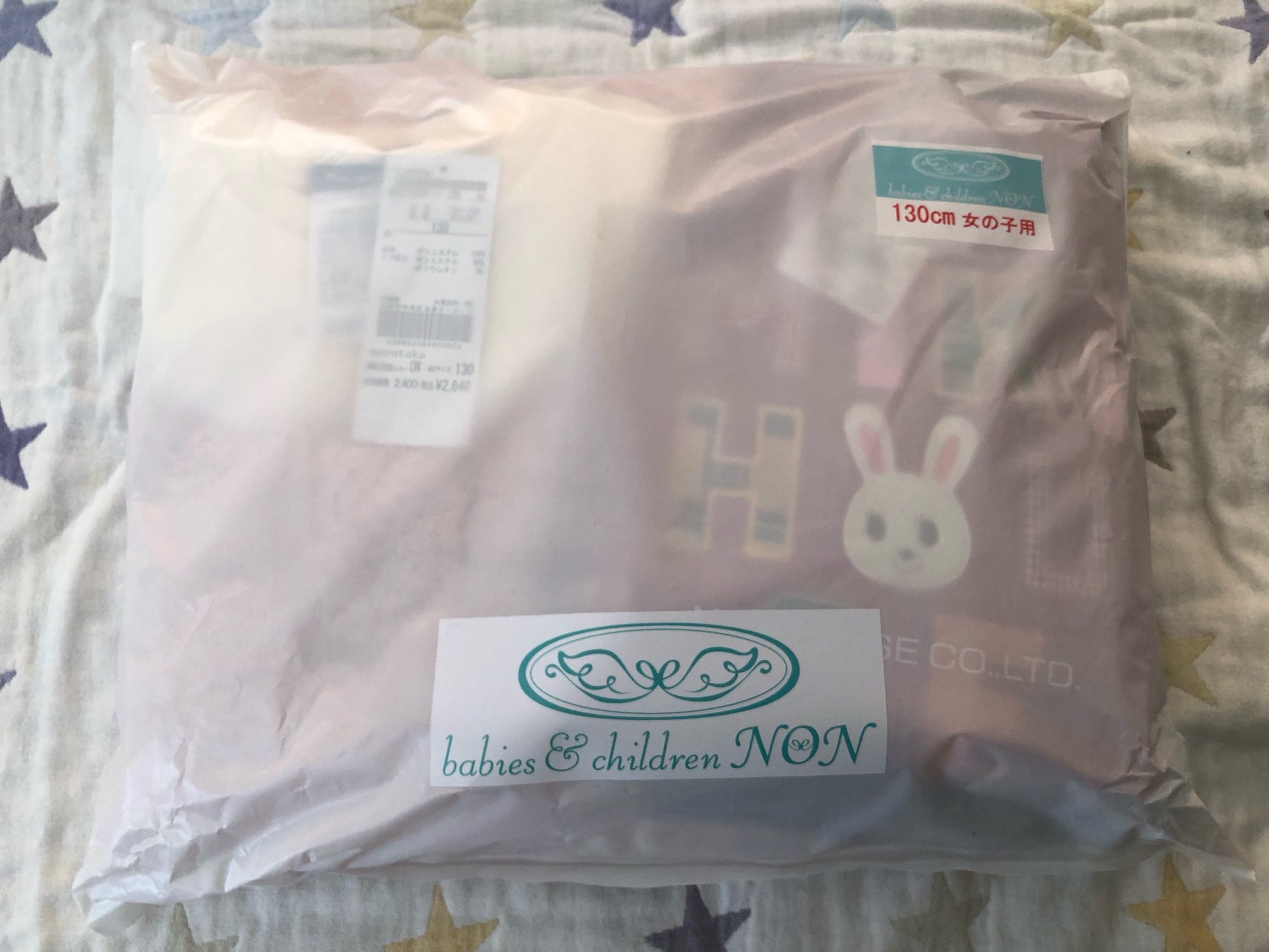 届きました〜❤️❤️❤️めちゃ早い!!!早速ネタバレします😊お洋服はバッグに入った状態で届きました。中が少し透けてます??薄い、エコバッグ的な感じです。数年前の、2万円福袋のバッグのほうがしっかりしてますね。↓↓↓↓↓はい!!こんな感じでした❤️❤️❤️ええ!!!130なのに…こんなにうさこ居て良いの???もっとシンプルでお姉さんなラインナップを勝手に想像していた私は、無言で袋に収納しちゃいました😅いや…うさこ好きだし、嬉しかったんだけど…全くの予想外でした。ワンピースうさこのジャカードワンピ❤️初めましてのカラーで嬉しい!薄手アウターお気に入りで沢山着せた、思い出のパイル地アウター❤️お帰り〜〜❤️❤️❤️ウィンドブレーカーが来ると良いなと思っていたけど、パイル地も大歓迎❤️トップス2点ボーダーのは、ロンTより少し厚めの生地です。後ろスナップになっていて、ジャンパースカートのインナーに良さそう。赤いトレーナーは、これまたサイズアップのうさこのバックロゴ。裏起毛なので、寒い日に重宝しました。最後にパンツこちらは初めましてなパンツ。ちょっとだけ、中からは出さずに封だけ開けてみましたが、前後異素材だと思います。私ははかせやすいから好きですが、好みが分かれますね。以上!私的に大福袋でした❤️❤️うさこいっぱい❤️❤️やばい、追いポチしたくなる〜〜🤣10万アウター、着せたくなりますね。ご覧いただきありがとうございました❤️
