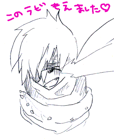 はい、これ↑は前書いたラビアレ・・・・もどき・・・(汗)最近ペンタブの調子が悪いです・・・。泣きたい・・・。パソも動き遅いし・・・もぉ!(怒)ってか、早く火曜日にならないかなぁ~♪Dグレのアニメみたい...つか、いきなりですけど、ラビの声かっこよくないですか??(><)めっちゃタイプなんですけどぉ~!!!なんか、かゎいいけど、かっこよくって、たまにキューンとさせられますvvいいなぁ~♪あの声を間近で聞きたい・・・vv