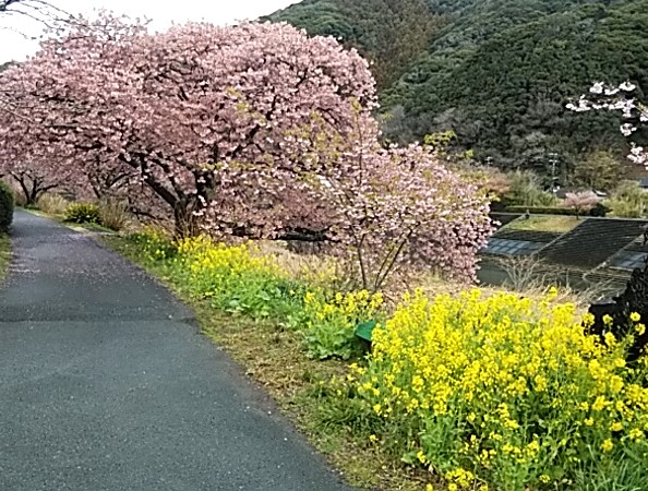 河津桜も満開を過ぎて、葉っぱが出て、花びらが風に舞うようになりました。