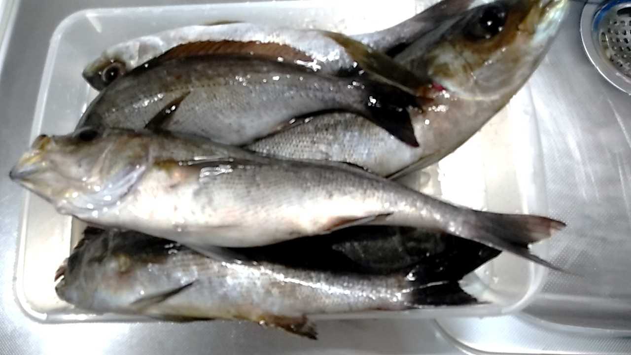 同じ場所に投げ込むと、1投1匹のペースでイサキがか掛かりますが、最初のポイント探しで餌を消費してしまったので、まもなく餌切れです。