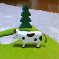 まめちゃんの最近気に入っている遊びは木で作った動物を使ってかくれんぼをすることです。動物の種類は、うし、きりん、ひつじ、あひる、ぞうの5種類ありますが、大抵は、「うし」を隠します。それも全身を隠さないで、なぜか柱の陰からしっぽだけ覗かせるのです。そして「うししゃん、どこいったのかにゃー?」と、訊いてきます。「あれ?どこにいった?まめちゃん、しってる?」と訊くと、「しらない・・・。」とうつむきます。「どこいったんだろうね。こまったなぁ。」と探すふりをすると「あっ、あしょこ(あそこ)にしっぽがみえてるよ。」とうきうきして指をさします。「あー。いたいた。こんなとこにいたんだぁ。」と探し出したふりをすると「うししゃん、いたねー。」といいながらまた隠します。こんなことを飽きるまで繰り返す毎日です。