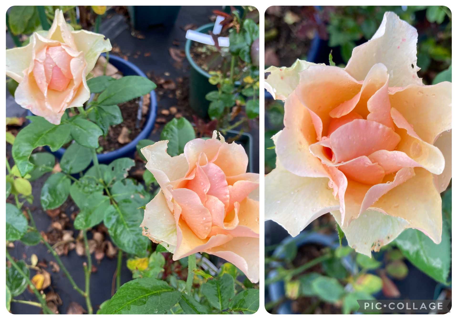 朝から雨☂️降りどうも秋晴れが待ち遠しい毎日ですお洗濯物もスッキリと乾いてはくれません😫秋野菜の苗を買いに京丹波のコメリにGo🚘となりました京丹波のコメリといえば前回買いそびれたミニ薔薇ちゃんご縁があったら残っているはず❣️ありました👏紅色がかった蕾から白色に咲き咲き進むと緑になってくる色調変化が楽しめるミニ薔薇ですしっかりと枝を伸ばし葉っぱも緑で元気いっぱい♪───O(≧∇≦)O────♪残ってくれていてありがとう大切に育てるからね😊秋植えの球根と元肥ようにマグァンプも買いましたもちろん薔薇の植替えにも使いますオードリーヘップバーンが咲きました2月に鉢植えから地植えにした株ですなかなか育たず弱ってきているように思えてすごく考えて地植えにしましたが正解だったようです春に何本かベーサルシュートを出し元気を取り戻してきました花弁はサーモンピンクでフルーツのような香りがします清楚な感じがとても気に入っていますパトロールで写した今日の花です2年目になる孔雀草が咲きましたプランターに2株を植えたままにしているのでとても窮屈で可哀想です咲き終わったら地植えにして来年は羽ばたいてもらいましょう🪽薬剤散布をして10日なのに💢またまた葉を食べられています悔しー!夏剪定後の新芽もかなり出てきているので週末にもう一回薬剤散布をしよう٩( 'ω' )و
