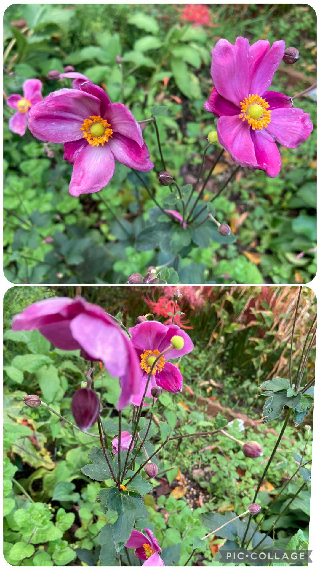 久しぶりの晴れ☀️だけど湿度が高い台風🌀も近づいてきていてなかなかスッキリしない天気お庭の様子が秋になってきたこの春に鉢から地植えにした秋明菊3年ほどウチにいるけどやっと綺麗に開花ピンクのかわいい花🩷やっぱり地植えだと株も増えてしっかり育つなぁー今度白の秋明菊も買って紅白で植えたい🎊ハマギクも蕾が膨らんで賑やかになってきた2年目の株去年も少し咲いたけどかなり様子が違います先端に1つずつ咲くと思っていたらたくさん蕾が上がってきて多いものは6個から7個もついていますこのまま咲くとすごく豪華になる気がして楽しみ倍増です😊これ以上大きな鉢への植え替えはできないのでこの冬に絶対地植えです∧( 'Θ' )∧切り戻した花たちがまた復活してきました涼しくなって薔薇と同様に色が鮮やかになりましたまた色とりどりの庭が戻ってきています栗も少しだけ拾いましたこれでは栗ご飯もできません( ´Д`)y━・~~
