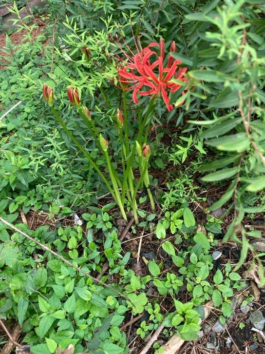 9月に入ってから雨が多いですね昔から9月の長雨と言って雨はよく降っていたけど10月に入っても雨の日や曇った日が続きいています夏が以上に暑かったので涼しくなったと思っているけど平年よりかなり気温は高く10月中頃になってもまだTシャツ👕で過ごせるなんていつもなら長袖シャツやトレーナーを着ている頃ですよねそろそろ秋薔薇のシーズンが始まります蕾が膨らんできています夏剪定の仕方が甘かったのか1、2輪ずつチラホラと咲き出してきてしまいましたなかなか一斉にとはいかないものですねプリンセスドゥモナコやサンスプライトも1輪だけアイスバーグも2、3輪慌てものなのでしょうか?慌てものは他にもいますね色はかなり鮮やかになってきていますでも雨で濡れてぐったりしています(´°̥̥̥̥̥̥̥̥ω°̥̥̥̥̥̥̥̥`)雨の合間に夫が草刈りをしてくれました山林用3枚刀です裏庭西側が一夏でジャングルです家の庭で山林用を使うなんて😱ほんまありえへんわぁ〜チラッと見える建物は蔵ですが草が伸びすぎてどこなのかわかりません草ってすごいですね掘っておくと木になってしまいます知ってましたか?この冬はここを開拓して庭を作っていくのかと思ったらちょっとへこたれてしまいそうです_| ̄|○