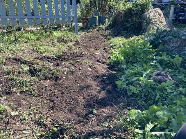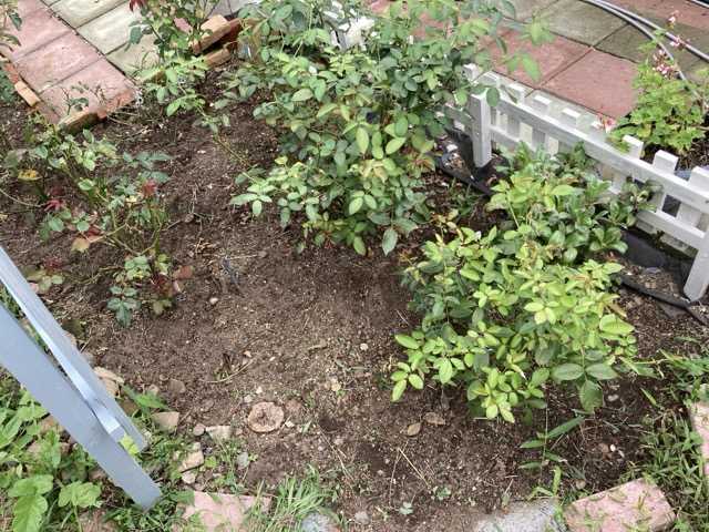 今日は雨の予報だったけどなんとか一日持ちました中央フェンス裏で枯れていた紅葉の木を息子にチェーンソーで切ってもらいました草を引きながら耕していると黄金虫などの幼虫がたくさん出てくるのでオルトランDXを撒いて予防です黄金虫の幼虫は薔薇の根を食べられないように植える前にしっかりと予防です耕しているとあちこちから太い木の根が出てきます全部を掘り起こすことは無理なので掘れて出てきたところだけチェーンソーで切ってもらいました石もたくさん出てきます大きなものは道になるところに埋めましょう今日は防草シートで道を作って終了です道のイメージができると花壇の形も見えてきますね紅葉と山茶花の木の下にクリスマスローズを植えるのも良さそうです秋薔薇の季節なのですねアイスバーグが順調に咲き進んできましたサマンサ レッドクィーン キャラミア赤花ですサマーレディ オードリーヘップバーン ブラウンピンクピンク色ですがそれぞれですムーンライトハニー リオサンバ ミケランジェロ黄花も綺麗です 明日は雨予報早く上がって庭仕事ができると良いな・:*+.\(( °ω° ))/.:+