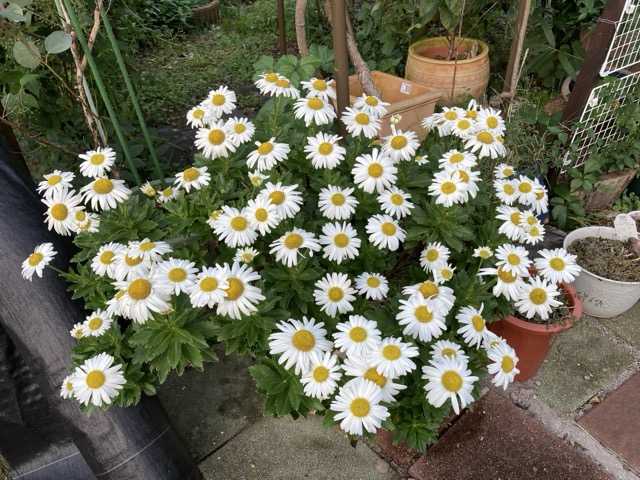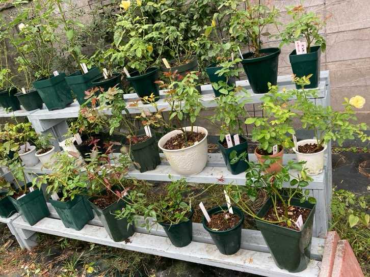 後少ししたら薔薇も休眠期に入るので11月は肥料入れをしないことにしました葉が落ちて弱ってきている薔薇も多いので今日活力剤の投与から今回はリキダスで暑い夏を頑張って乗り越えた他の鉢植えにもリキダスをあげようみんな元気になってねリキダスをあげながら気づきましたが零れ種でノースボールがたくさん育ってます草 に混じってしまってわかりづらいですがたくさん生えています手入れをするとこんなですずいぶん大きくなっていて花芽のついた株までありますフェンス裏の道に昨日のカラーモルタルを配置してみました何回も並べ替えて少し様になってきmした比べてみるとこんこんな感じですまだ少し道が短いので後4枚ほど作ったらブロック作りは終了して後メジに固まる砂を入れて完成となります片付ける鉢が溜まってきました土を出して再生して使えるようにしていきますそろそろ冬から春にかけての花の準備に入ります